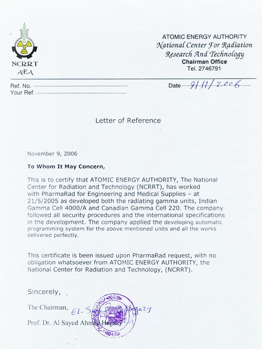 Egyptian Atomic Authority, National Center for Research and Radiation on Technology (NCRRT).