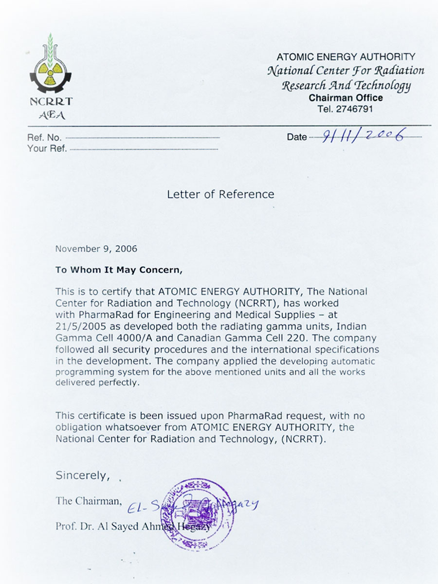 Egyptian Atomic Authority, National Center for Research and Radiation on Technology (NCRRT).